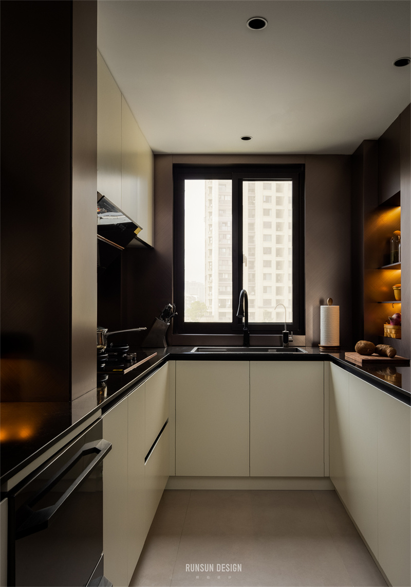 運(yùn)用金屬質(zhì)感的護(hù)墻與層板