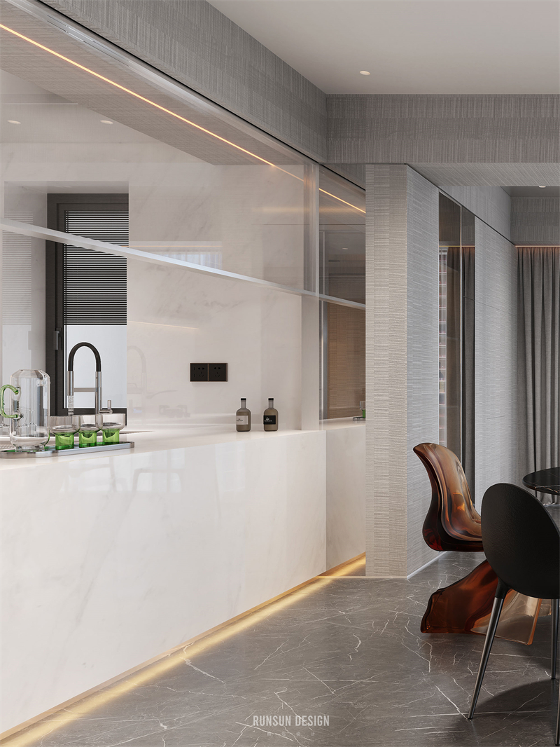 本案玄關(guān)以建筑 光照 山水為意向模版